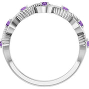/ Ring / Set / 14K White / Natural Amethyst / Round / 2 Mm / Polished / Natural Amethyst Stackable Ring
