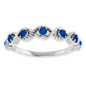 / Ring / Set / Platinum / Natural Blue Sapphire / Round / 2 Mm / Polished / Natural Blue Sapphire Stackable Ring