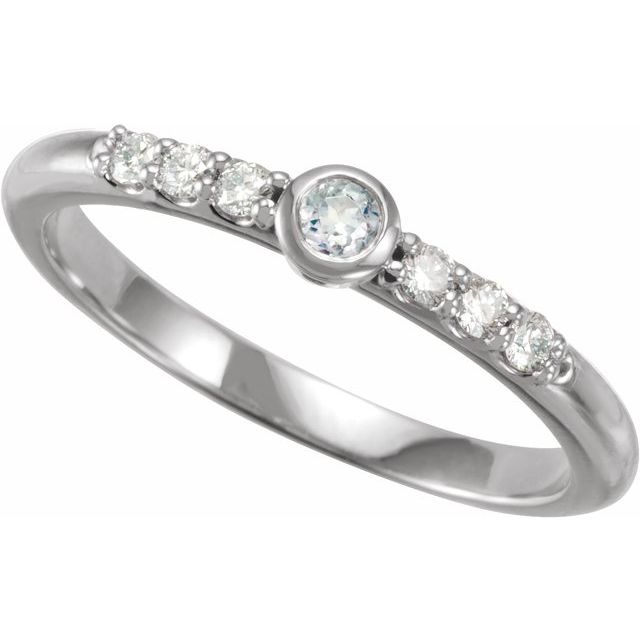 Sterling Silver Natural Blue Sheen Moonstone & 1/6 CTW Natural Diamond Stackable Ring