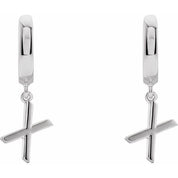 18K Initial Hinged Dangle Huggie Earrings in White and Yellow Gold